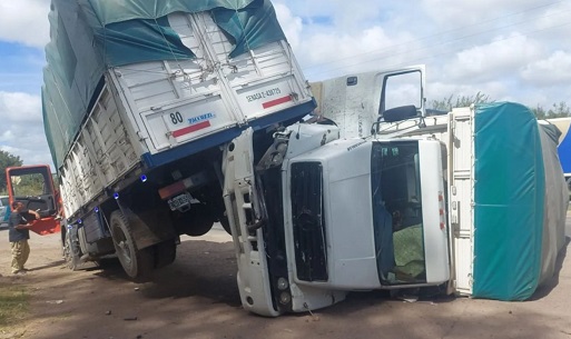 Volcaron dos camiones en la rotonda de Ruta 36 y 520 en Abasto